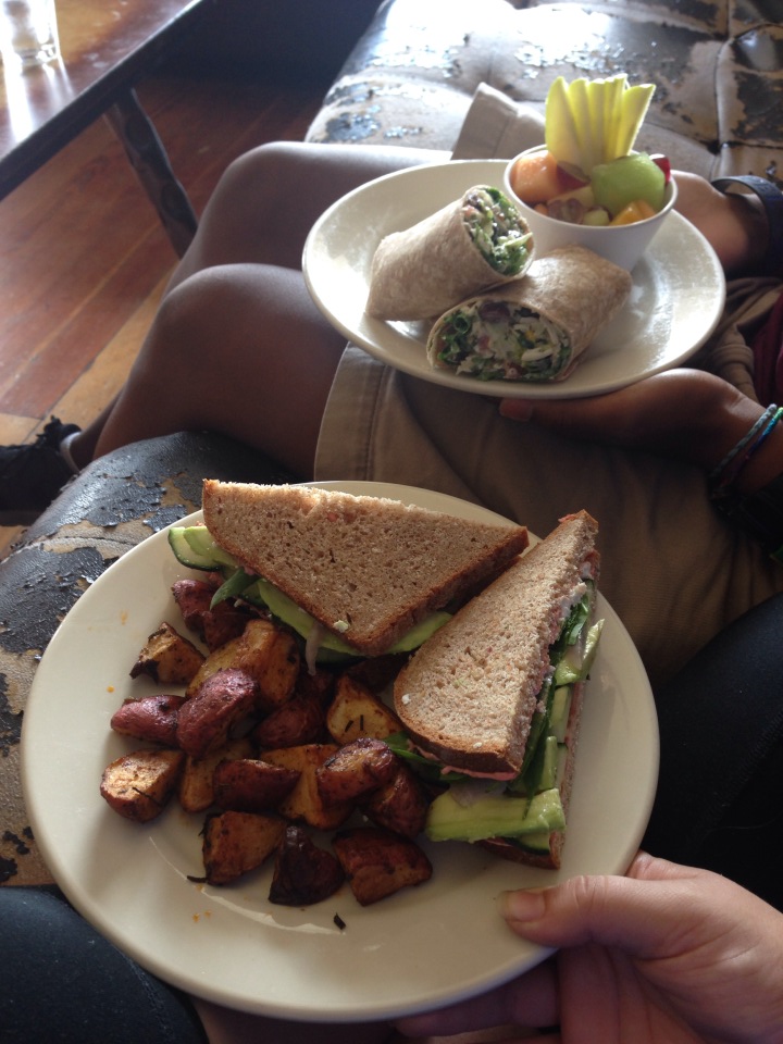 I had been hearing about this place called Village Cafe through my research about sustainable businesses in the Bryan College Station area and really wanted to check it out, so we did.! We drove to downtown Bryan and ate at Village Cafe. This is a business that prides themselves on serving local food. I got a Southwest wrap and Madison got a Raspberry salad sanwhich, both of which were AHH-Ma-ZZing. I had no idea there were such cool things so close to us. Cool to someone like me, a treehugger to say in the least. I was really impressed and will definitely be heading to downtown Bryan more often to check it out.